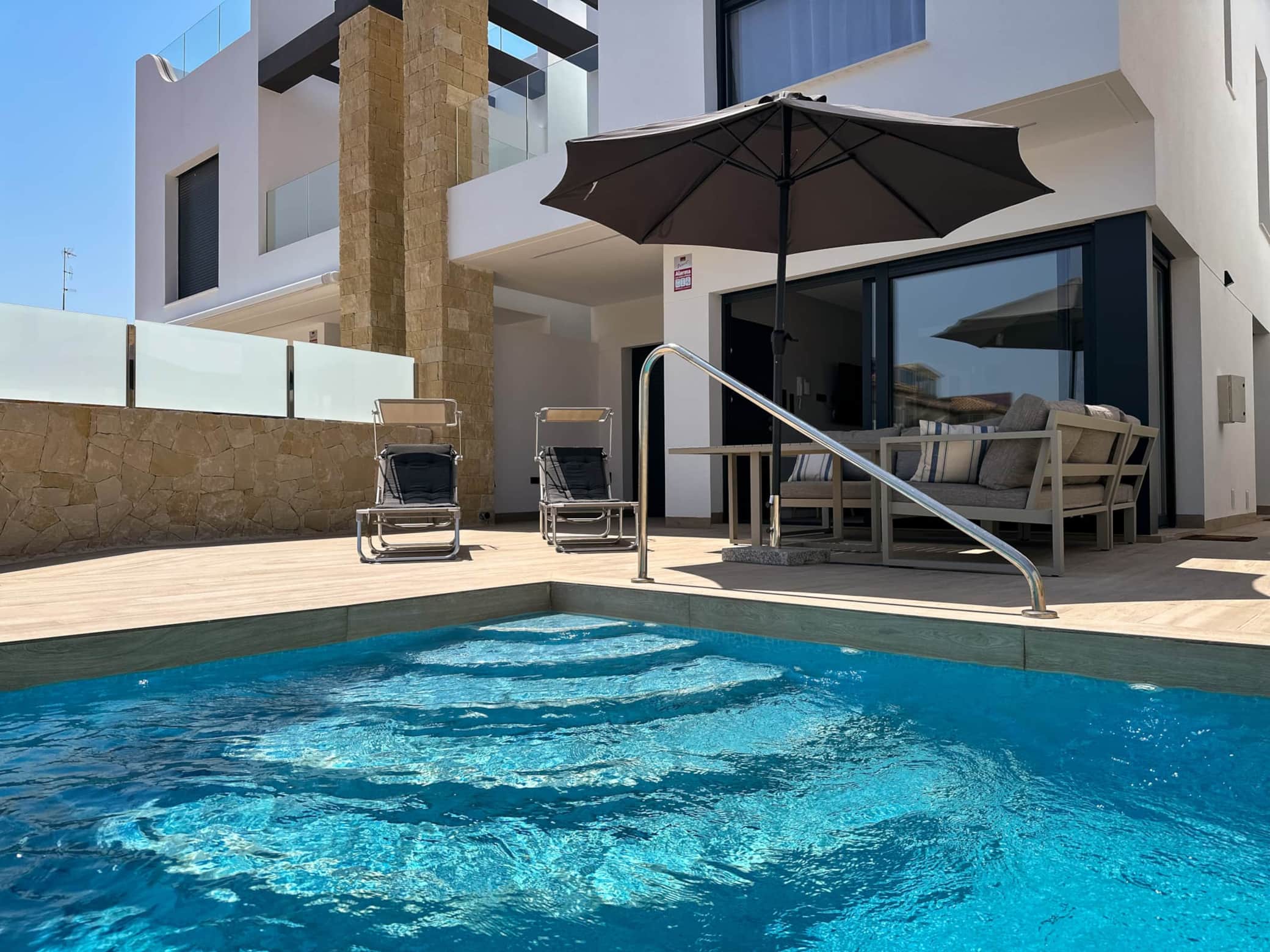 We had a wonderful time in this modern villa in Punta Prima – absolutely recommended, a 1 with a star! We traveled as a family Pure luxury! The villa is perfectly equipped with everything you need: bedroom, kitchen, washing machine, everything clean and very well maintained. We used the private pool every day as a wonderful cool-down in the sun. From here we made great excursions to Alicante, La Mata, to the castle of Santa Bárbara, through Santa Cruz and to the Rosaroten See. A highlight was the flamingos in the wild – unforgettable! Culinary we tried a lot, we liked the Indian just around the corner the best. A very big praise to Maria and Nicki, who warmly welcomed us, were always available to contact and made our stay perfect. For us, it was a successful vacation with sun, sea, pool, adventure and relaxation – we recommend the villa without reservation! We will be back! Best regards, Patrick, Maxi and Alexis
